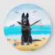 Black German Shepherd dog sitting on beach is a perfect gift idea for someone who love this dog breed.