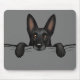 A cute mousepad for German Shepherd lovers. Black GSD peeking. Add some fun to your work space with this original artwork. ©Jenn Kay