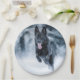 Black German Shepherd in snow Duvet Cover Paper Plates