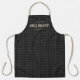Custom kitchen apron feature classic dark gray and black gingham check with tan color personalized text of grill master and name . Great personalized bbq apron for men.