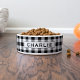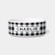 Black Gingham Check Monogram Pet Name Bowl