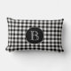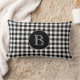 Black Gingham Pattern Custom Monogram Lumbar Pillow