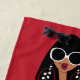 Black Girl on Red, White, Grey and Black Beach Towel