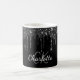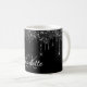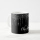 An elegant, girly and glam mug. A chic black background decorated with faux glitter drips, paint dripping look. Personalize and add your name and monogram initials. The name is written with a hand lettered style script. White colored letters.