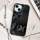Easily personalize this black brushed metal and glamorous faux sequin glitter patterned phone case with your own custom monogram.