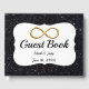 Elegant gold look alike infinity design with black faux glitter decorate this guestbook. Wedding guest books are fun for both the couple and their celebrants. Invite attendees to leave you well-wishes at your reception, and you're guaranteed to have a keepsake to look back on for years to come. Plus, your guests will get to leave their mark on your event, not to mention put in writing whatever they didn't have a chance to express in person on the big day. Personalize the book by changing the text in the fields provided. You can change font style, size, and color.