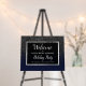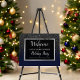 Set the tone for a sophisticated holiday celebration with this elegant black and navy blue glitter winter holiday party welcome sign. Featuring a sparkling faux glitter border, the design is ideal for a corporate Christmas party, office holiday event, or any winter gathering that calls for a bit of festive glam. The foam board uses a sleek black background paired with stylish white text for a modern yet timeless look. Perfect for companies and businesses looking to add a touch of class to their seasonal celebrations. Customize with your event details and host a night to remember.