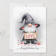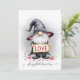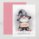 Make this Valentine’s Day extra special with a delightful card featuring a charming gnome holding a rustic wooden sign that reads “LOVE.” Dressed in a whimsical black hat adorned with pink hearts, this gnome is surrounded by soft floral accents and rose petals, creating a perfect blend of romance and charm. The elegant “Happy Valentine’s Day” message in script completes the design, making this card a wonderful choice for expressing your love and appreciation.