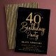 Black gold 40th birthday party invitation. Trendy modern design, perfect for a stylish men's or women's bday celebration. Features script font and stripes on the back. Customize with your own details. Printed Zazzle invitations or instant download digital printable template.