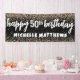 Celebrate a special milestone with this horizontal 50th birthday banner, designed with bold and festive flair. At the top and bottom, shimmering gold and silver faux glitter confetti add a fun and celebratory touch. In the center, “Happy 50th Birthday” is written in a mix of handwritten script calligraphy and a clean, modern font, giving the banner a stylish and elegant look.