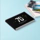 Modern 70th birthday party guest book featuring a stylish black background that can be changed to any color, the title "seventy", plus the name and date in real gold foil. This can be changed to rose gold or silver.