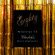 A welcome poster for a 80th birthday party. Black background. Sixty written with large golden hand lettered style script. Personalize and add a name.