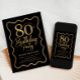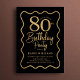Black gold 80th birthday party invitation. Trendy modern design, perfect for a stylish men's or women's bday celebration. Features wavy border and script font. Customize with your own details. Message me if you need custom age. Printed Zazzle invitations or instant download digital printable template.