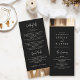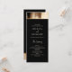 Guide your guests with grace using our wedding program card. Chic minimalist typography shines against a dark watercolor canvas adorned with faux gold accents. The black overlay gracefully displays your wedding program details on both sides.