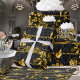 A luxury posh black and gold wrapping paper featuring gilded acanthus leaves in a lively gold floral display with gold chains and crests over a black acanthus leaf damask background.