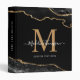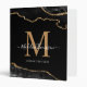 Black Gold Agate Geode Elegant Script Monogram 3 Ring Binder