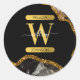 Black & Gold Agate Geode Glitter Monogram Classic Round Sticker