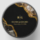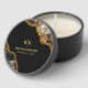 A beautiful black and gold geode agate crystal gemstone design with gold glitter accents. This elegant marble effect design combining black tones and gold creates a sophisticated amethyst piece of abstract art. The combination of the black and gold colors creates a sophisticated, trendy and chic style. Elegant wedding candle favor design with modern elements. The simple setup of the typography gives it a distinct style. Matching wedding invitations and other stationery items are also available.
