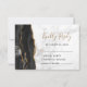 Black Gold Agate Gray Marble Wedding RSVP Card