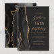 Black Gold Agate Script Dark 18th Birthday Invitation