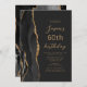 Black Gold Agate Slate Script 60th Birthday Invitation