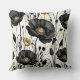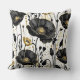 Black, gold and white poppies throw pillow
