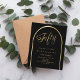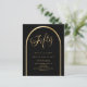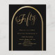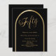 An elegant 50th birthday invitation. A black background with a golden arch on the front.