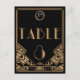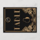 A sophisticated, vintage look wedding table number 8 (eight) postcard with a 1920's "The Great Gatsby" theme in jet black and shades of beige simulating gold. A black background emphasises the complex geometric, Art Deco aesthetic frame in golden tones. Both the Bride's and the Groom's monograms (initials) are highlighted by using a contrasting pale silver grey color font. This is a two sided version of this design however please note that being printed on post card stock, only one side has a glossy finish.