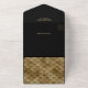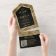 Black Gold Art Deco Waves Pattern QR Code Wedding All In One Invitation