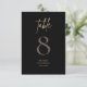 Elegant black and gold birthday party table number card featuring modern typography on a stylish dark background. Perfect for milestone birthday celebrations, adult birthday parties, and black and gold themed events. Ideal for table decorations, party seating, and event organization. Matches black and gold birthday invitations and party decorations.