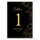 Black gold botanical birthday celebration table number. Modern design features botanical accents and typography script font. Simple floral card perfect for a stylish party.