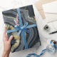 A beautiful graphic design of black; gold; blue and white and pale gray streaks that resemble agate stone / marble. This elegant and luxurious looking gift wrap is ideal for classy wedding; anniversary and birthday party presents.