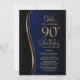 Plain white envelopes are included with paper invitations and will come to fit the invitation size you select. If you don’t need the envelopes, you may choose to not receive them by selecting the dropdown below "Envelopes" and choosing "None." If you’d like to have a design on your envelopes, you can browse all of these available envelopes to find the design that complements your Black Gold Blue Surprise 90th Birthday Invitation.