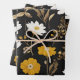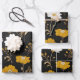 Black Gold Boho Wildflower Garden Wrapping Paper Sheets