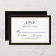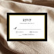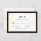 Black and white with a touch of gold classic wedding RSVP response card. Elegant block and script text within a black and shade of gold border. Black back.