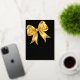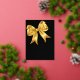A classic black background, decorated with a large golden bow. Personalize and add a name and party details. Real gold foil text.