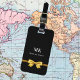 Black gold bow monogram initials elegant luggage tag