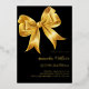 A classic black background, decorated with a large golden bow. Personalize and add a name and party details. Real gold foil text.