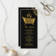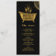 This modern and elegant black and gold menu and program captures the festive sparkle of a bubbly wedding brunch. Accented with champagne tones, delicate shimmer, and a touch of luxury, it blends glamorous elements with a minimal aesthetic. The central old fashioned bathtub motif adds a playful twist to this chic setting with pearls, prosecco, and champagne.