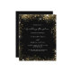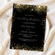 A modern, elegant wedding reception invitation. Black background decorated with faux gold glitter sparkles. Personalize and add your names and wedding details. White colored letters.
