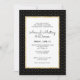 This invitation features a classy business theme with a black background accented with a gold triangle pattern. A white box with a gold border offers custom text for you to add your business or professional event invitation.
