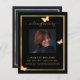 An elegant 2-page program. A black background, a faux gold frame, golden butterflies and space for a photo. Personalize and add name, dates and your text.