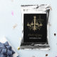 This design features elegant black background with a vintage golden color chandelier. The damask gold chandelier reflects its shadow contrasting against the black. The combination of the black and gold colors creates a sophisticated, trendy and chic style. Elegant wedding coffee favor design with modern elements. The simple setup of the typography gives it a distinct style. Matching wedding invitations and other stationery items are also available.