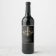 This design features elegant black background with a vintage golden color chandelier. The damask gold chandelier reflects its shadow contrasting against the black. The combination of the black and gold colors creates a sophisticated, trendy and chic style. Elegant wedding wine label design with modern elements. The simple setup of the typography gives it a distinct style. Matching wedding invitations and other stationery items are also available.