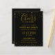 Golden Anniversary invitation with gold glitter confetti and cheer to 50 years typography on a black background. Personalize the black and gold invitations with details.
