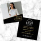 The front features a deep black background with gold and white fonts, showcasing your photo, company logo, name, and title or business name in a clean, polished layout. The back continues the black aesthetic, displaying your contact information and social media icons in a refined and balanced arrangement.