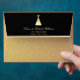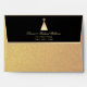 Simple, elegant, luxury chic black and rose gold 5x7 envelope for winter holiday greeting cards and invitations with foil inside, return address and Christmas tree at the top flap.