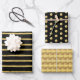 Black and Gold Faux Foil Christmas Polka Dot Stripes Squares Pattern Holiday Wrapping Paper.