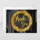 A beautiful gold letter saying thank you on black circle post card is very elegant and classic to thanks your guests.