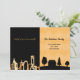 An elegant and minimalist moving annoucement card from a city life to a rural country life. Black and faux gold with a city skyline and a country home. Personalize and add your new address and message to your family and friends.